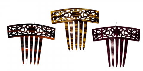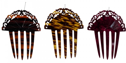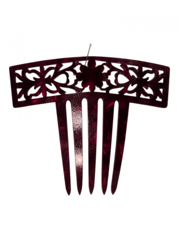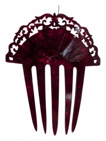 Nacre red comb made by hand and manufactured in Spain. Measures 9 x 6 cm.
