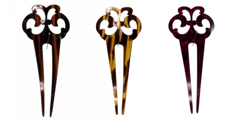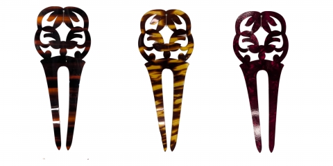 Hairpin. 11x5 cm. Red mother-of-pearl finish.