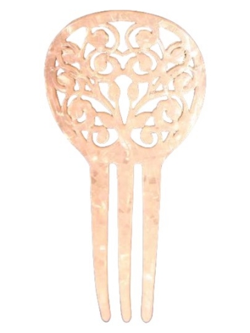 Horquilla en nácar salmón calada, hecho a mano en España. Medidas 9 x 6 cm.