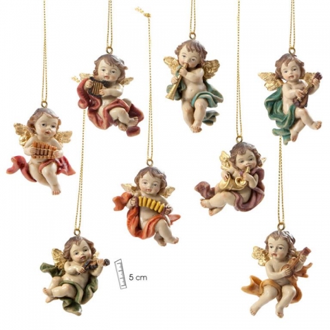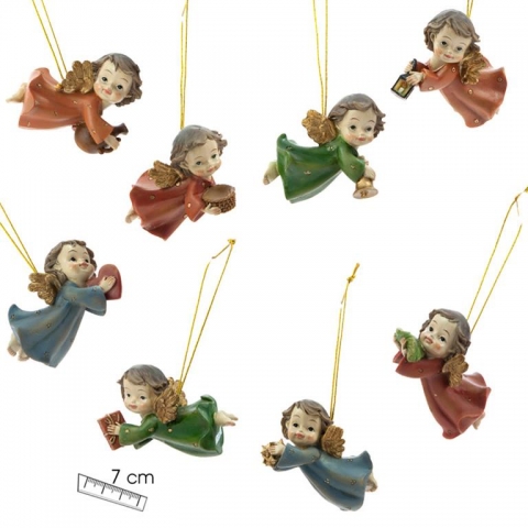 Hanging angel. 8 models. Measurements: 7 cm. Design by Giordano de Ponzano made of polychrome resin.