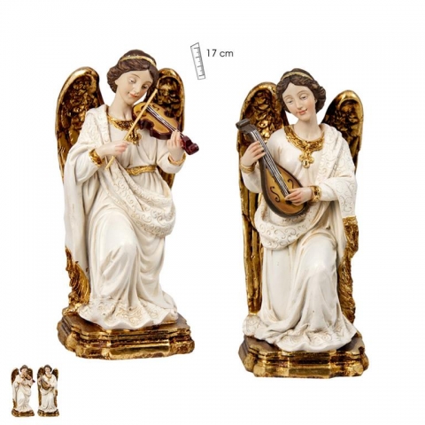 Ángel musical traje crema y oro. 2 modelos. Medidas:17 cm. Diseno de Giordano de Ponzano realizado en resina policromada.