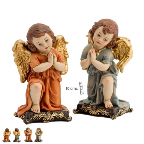 Angel kneeling dressed. 2 models. Measurements: 10 cm. Design by Giordano de Ponzano made of polychrome resin.