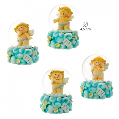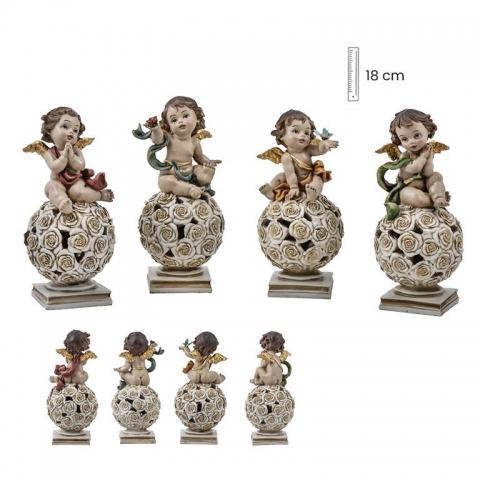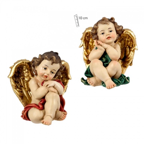 Angel sitting on ball. 2 models. Measurements: 14 cm. Design by Giordano de Ponzano made of polychrome resin.
