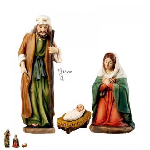 Holy Family. Measures 15cm. Design by Javier in polychrome resin.