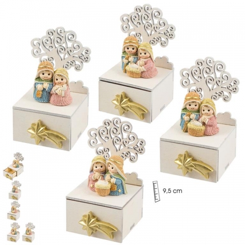 Misterio encima de cajita de madera. Medidas 9.5cm. Diseño de Javier en resina policromada.