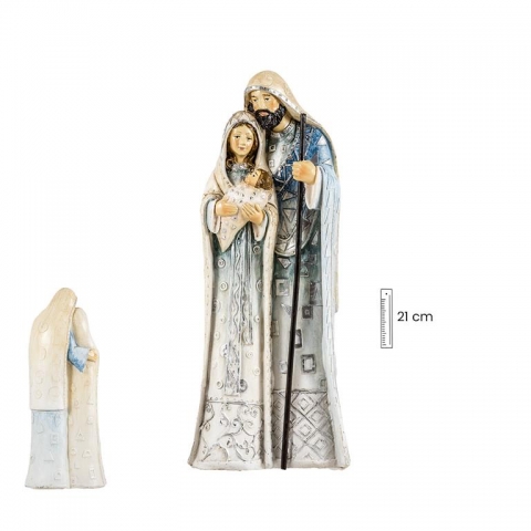 Sagrada familia en tonos azules 21 cm. Realizado en resina policromada.