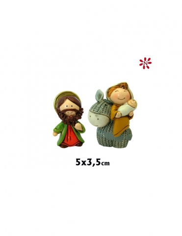 Holy Family Children's Game 5x3. 5cm S. Jose With Cane And Virgin In Brown Burrito With Child.