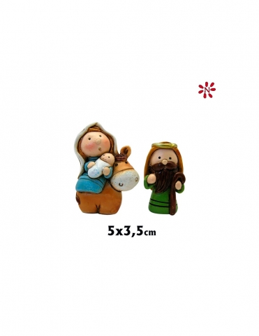 Juego Sagrada Familia Infantil 5x3. 5cm S. Jose Con Baston Y Virgen En Burrito Marron Con Niño.