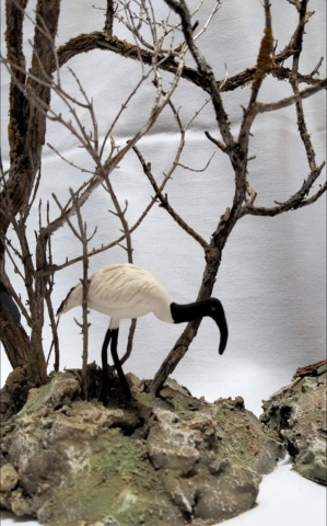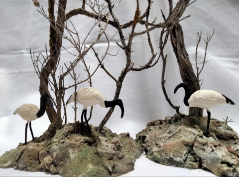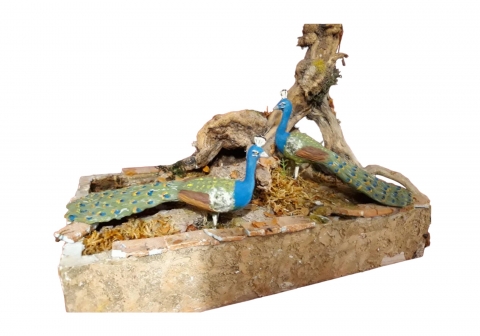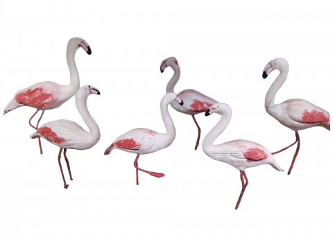 Group of sheep lying down with five lying down and one calf in mud, available in various sizes. Orientative photo due to the artisanal nature of the piece.