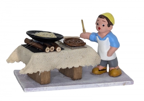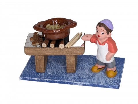 Shepherd/ess with mini churros table. Approximate measurements: 9 x 5 x 6 cm Modeled in clay by Alborox in 4 cm. Orientative photo due to its artisanal nature.