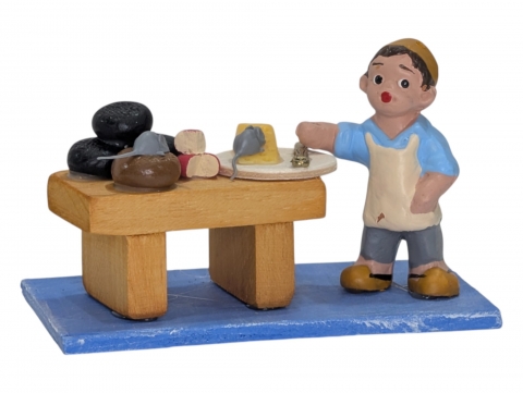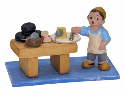 Shepherd with a mini cheese table and mice. Approximate measurements: 9 x 5 x 8 cm. Modeled in clay by Alborox in 4 cm. This photo is indicative due to its handmade nature.