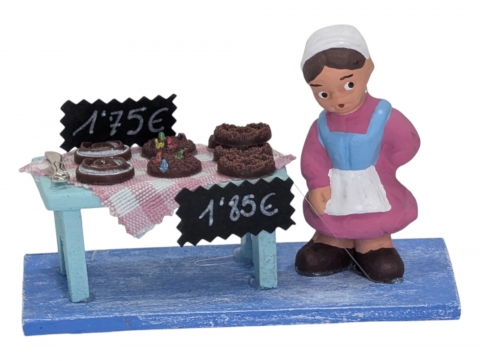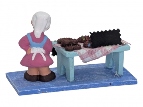 Shepherd with a mini table of sweets and cookies. Approximate measurements: 9 x 4.5 x 5 cm. Modeled in clay by Alborox in 4 cm. This photo is indicative due to its handmade nature.