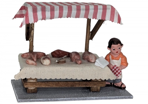 Butcher's stall for 4-5 cm Granada clay figures from Alborox. Orientative photo due to its artisanal nature. Measurements 11.5x7x9 cm.