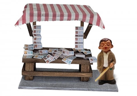 Puesto de lotería para figuras de 4-5 cm de barro granadino de Alborox. Foto orientativa debido al carácter artesanal de la misma. Medidas 11.5x7x9 cm.