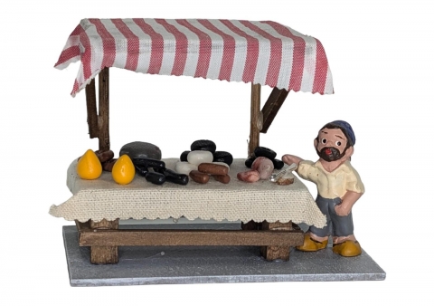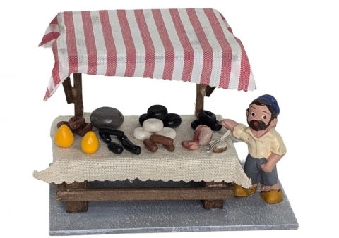 Puesto de embutidos para figuras de 4-5 cm de barro granadino de Alborox. Foto orientativa debido al carácter artesanal de la misma. Medidas 11.5x7x9 cm.