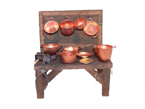 Puesto de cobre para figuras de 10 cm. Medidas: 11x7x12.