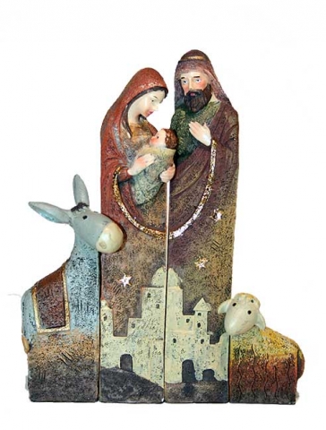 Nacimiento divisible en 3 piezas. Realizado en resina policromado. Medidas 16x8x2,5 cm.