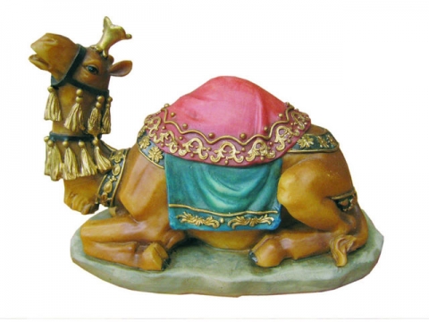 Camello tumbado en 14 cm diseñado por J. Mayo en terracota y policromía acrílica modelada por el taller artístico Mayo.