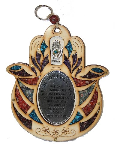 Blessing of the house with hand. 11x9cm. Made with stones and methacrylate.