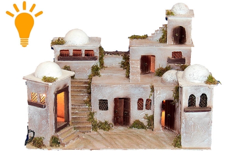 Pueblo moro con 3 luces luz ref 2201. Medidas : 51x30x36 cm en corcho policromado de Belenes Galán .