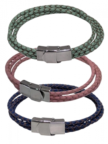 3x10 mm leather bracelet with stainless steel closure. Varied models according to color combinations.