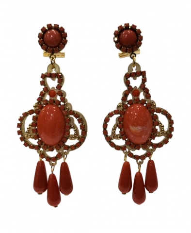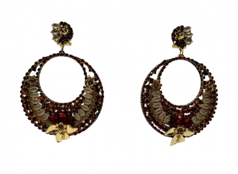Pendientes aros rojos calados fiesta. Cierre omega. Diseño de Carvajal. Medidas : 9 x7 cm.
