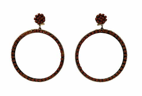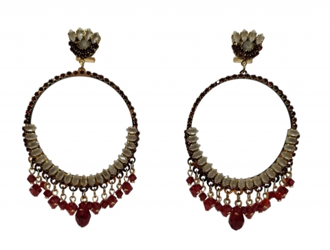 Pendientes aros rojos fiesta. Cierre omega. Diseño de Carvajal. Medidas : 10x6 cm.