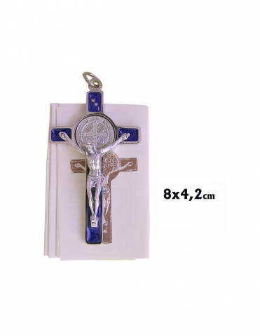 Metal cross of Saint Benedict with enamel in 8 cm. Measures 8x4 cm.