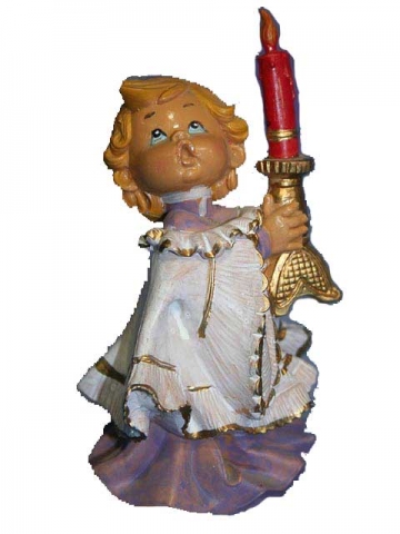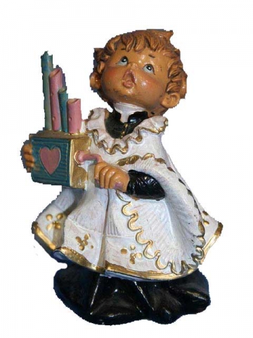 Monaguillo con candelabro. Figura en resina, 10 cms.