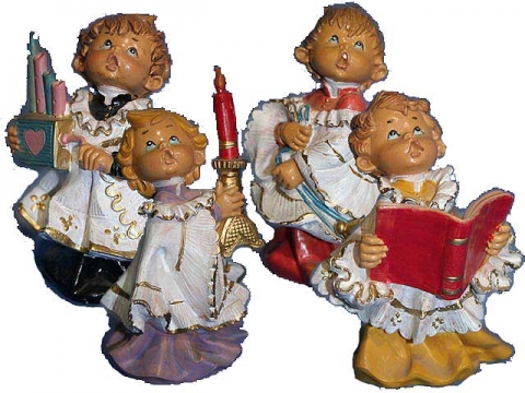 Grupo de monaguillos. Cuatro figuras en resina, 10 cms.