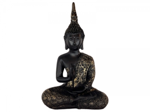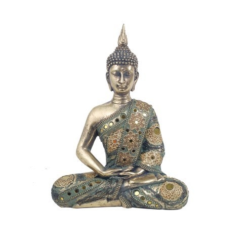 Sitting Buddha in resin with patina in bronze finish. Measurements: 21 x 9 x 28 cm Weight: 700g Brand: Veronese.