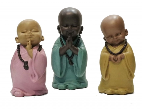 Three Buddhas Set seated in resin with patina in bronze finish. Measures: 9 x 7 x 11 cm Weight: 175 Gr