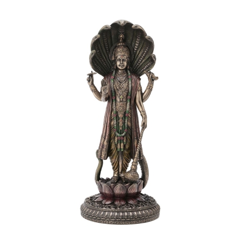 Vishnu con serpiente en resina con patina en acabado bronce. Medida: Medidas: 12,50 x 12,50 x 30 cm Peso: 1.57 Gr Marca : Veronese