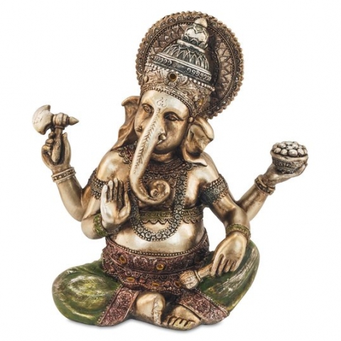 Figura Ganesh en resina con patina en acabado bronce. Medida 20x16.5x10 cm