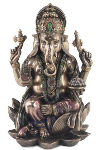 Figura Ganesh en resina con patina en acabado bronce. (Figura por encargo) Medida 54x44x38 cm