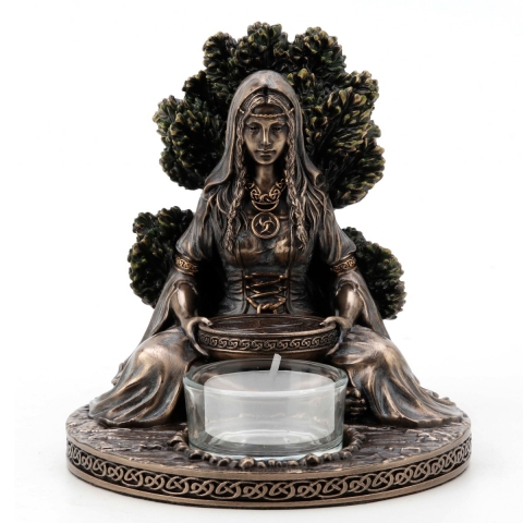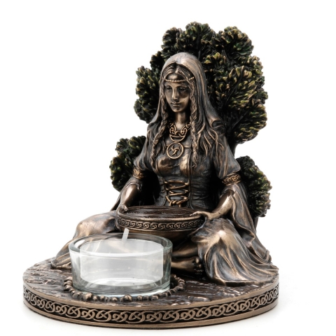 DANU CELTIC GODDESS CANDLE HOLDER in resin with patina in bronze finish. Measurements: 12 x 12 x 13.50 cm Weight: 690 g Brand: Veronese