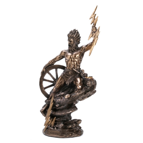 TARANIS CELTIC GOD OF THUNDER BACKFLO in resin with patina in bronze finish. Measurements: 12 x 9 x 25 cm Weight: 840g Brand : Veronese