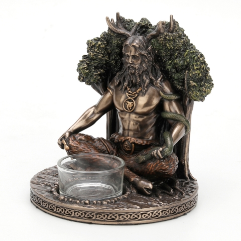 PORTAVELA DIOS CELTA CERNUNNOS en resina con patina en acabado bronce. Medidas: 12 x 12 x 13.50 cm Peso: 690 g Marca: Veronese