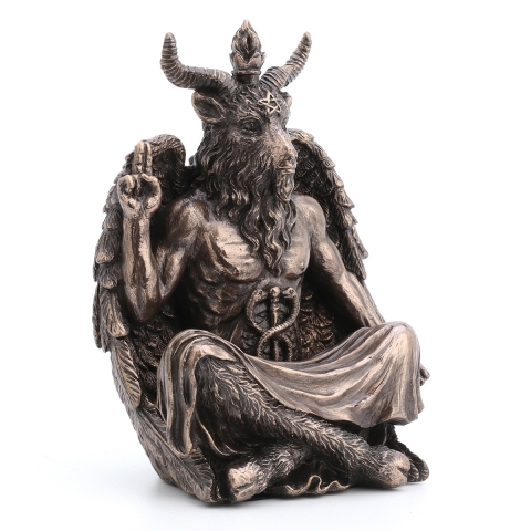 ESTATUA DE BAPHOMET, en resina con patina en acabado bronce. Medidas: 14 x 14 x 23,50 cm Peso: 1,43 kg Marca : Veronese