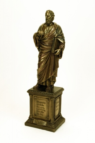 Figura filosofo griego Socrates en resina con patina en acabado bronce. Ref: 03001245 Medidas: 10.5x10x36 cm
