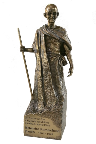 Gandhi en resina acabado bronce. Medidas: 12x9x29 cm