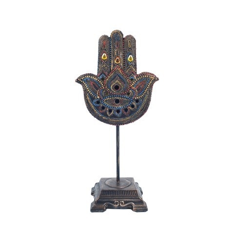 Fatima hand in resin with patina in bronze finish. Measure: 36x17x11 cm