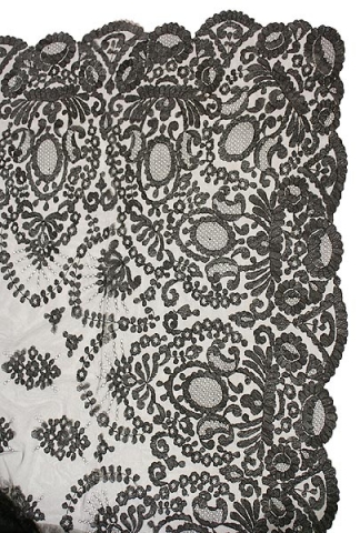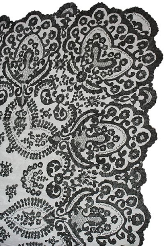 Mantilla modelo Rombos -doble blonda -003 bordado a mano en color Negro. Medidas 150x250 cm.