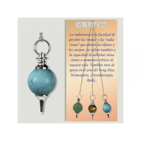 MAGNESITA TURQUESA. Péndulo Bola Con Metal.Fotos orientativas debido a la singularidad de la pieza.Tamaño 4cm.