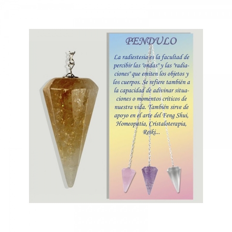 Péndulo de Cuarzo Dorado con Cadena. Fotos orientativas debido a la singularidad de la piedra.