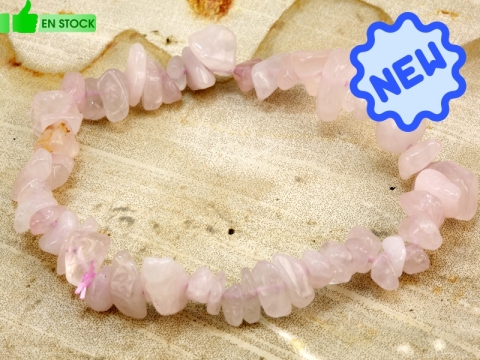 Elastic bracelet with rose quartz en chip. Orientative photos due to the uniqueness of the stone.