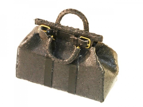 Bolso médico de piel a escala 1:12 realizado por Panizo, medidas 3.5x3x1 cm.