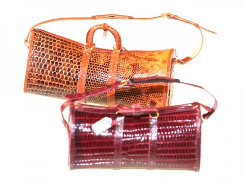 Iguana leather bag 1:12 scale by Panizo. Maroon. Measures 5x3x2 cm.