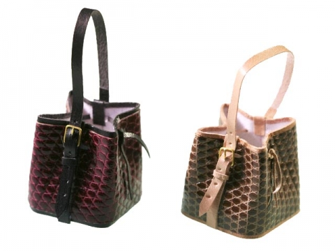 Leather Bag 1:12 scale by Panizo. Model "iguana." Measures 2x2x2 cm.