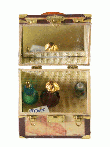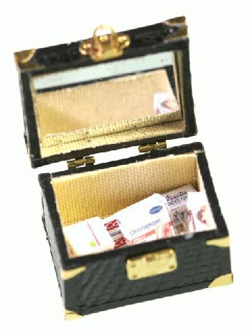 Neceser de piel a escala 1:12 realizado por Panizo. Modelo "iguana". Medidas 2x1x1.5 cm.